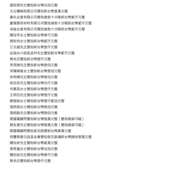 贊助明細