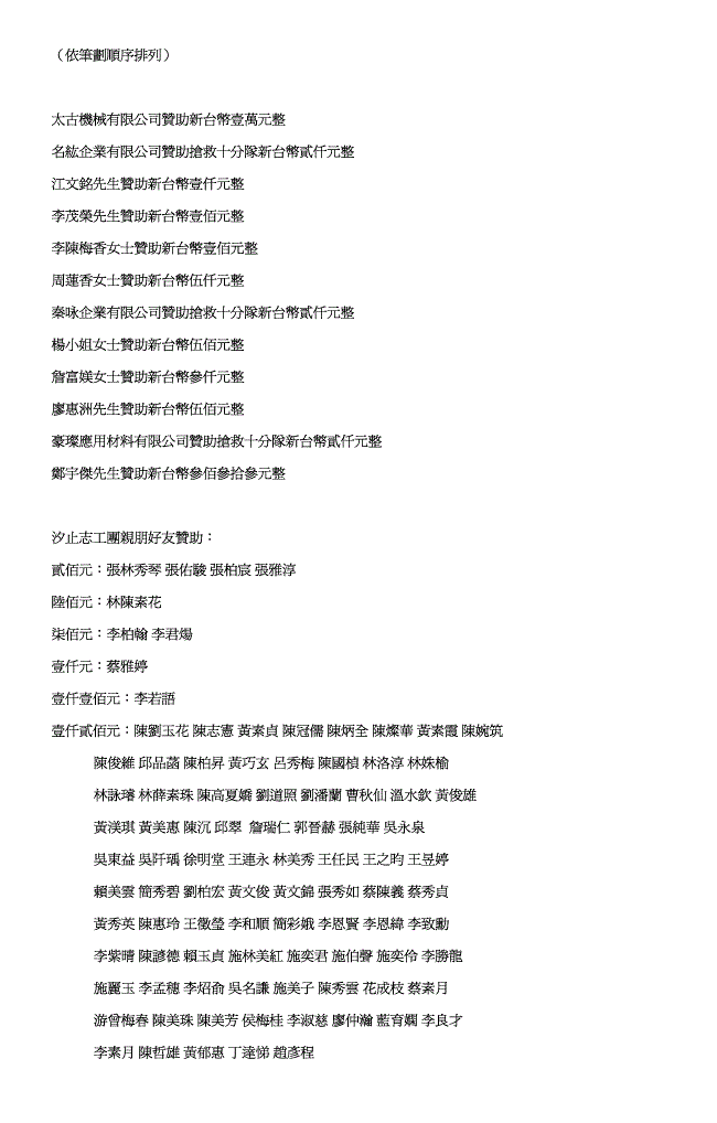 贊助明細
