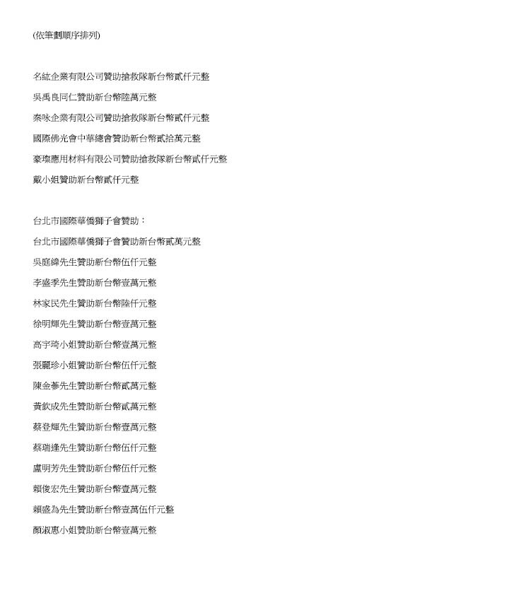 贊助明細