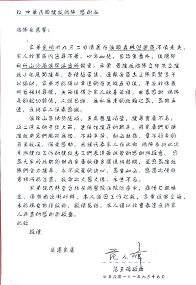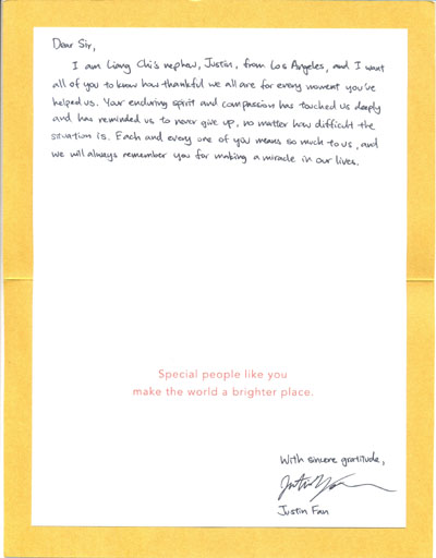 來自家屬的感謝信