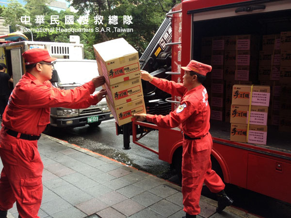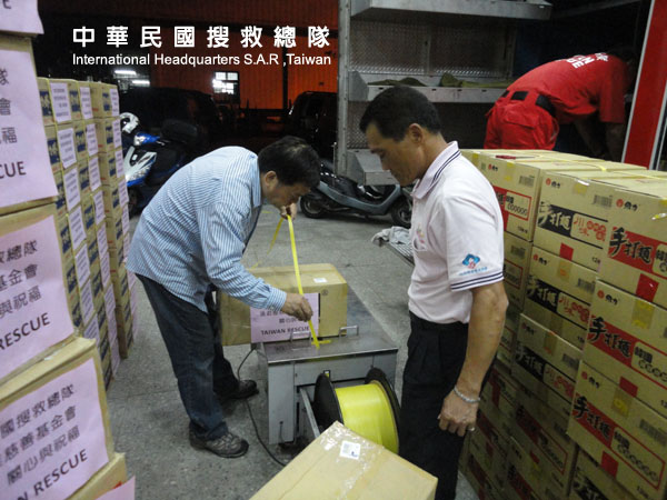 搬運賑災物資至馬尼拉經濟文化辦事處