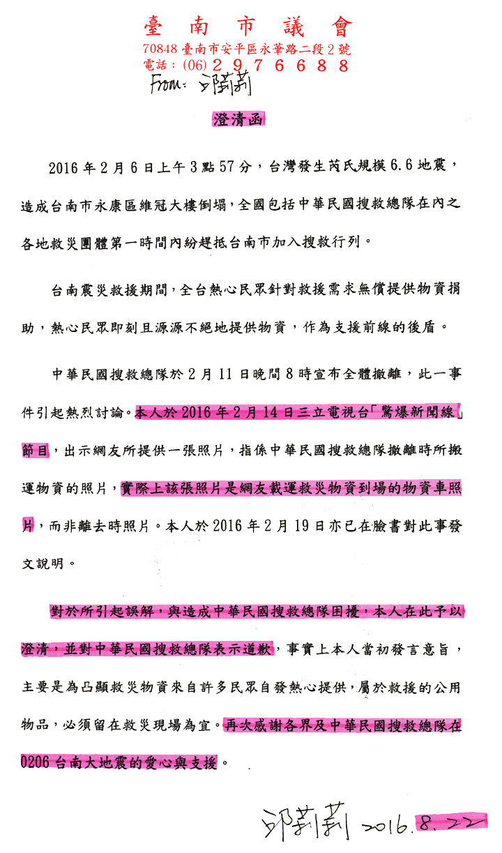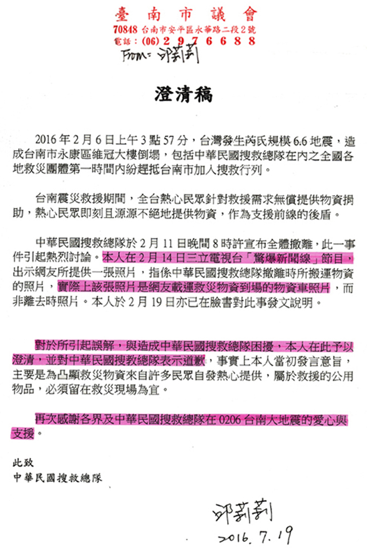 澄清與道歉