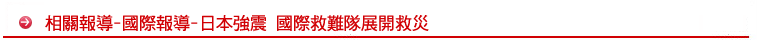 日本規模9.0的強震發生後,國際社會深切關注,並表示願意伸出援手,派人到日本協助救援工作,繼英美德等國救援隊後,13日包括我國民間搜救隊,等多支救援隊,也抵達日本,準備加入救災行列。