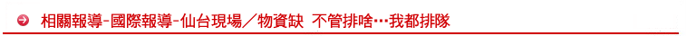 因為物資很缺,仙台市居民現在看到長龍就很敏感;有人一看到排隊,不管是排什麼,就先跟著排,幾乎任何物品對每個家庭都是必需品。