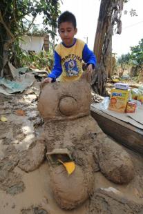 心愛的小熊變成泥熊,小主人心疼不已。(圖:星洲日報)