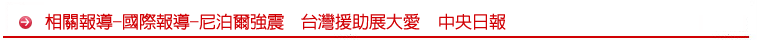 尼泊爾強震造成逾3000人死亡。台灣包括佛光會、紅十字會及長庚醫療團及中華民國搜救總隊,28日啟程前往尼泊爾,投入救災。中央社