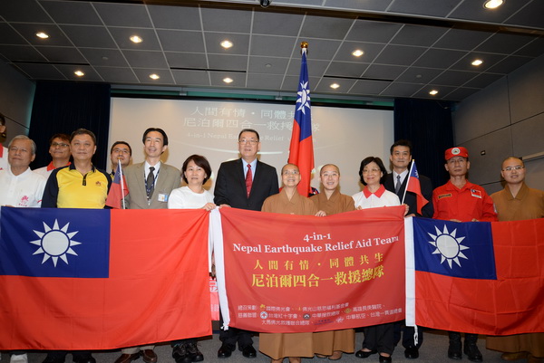 國際佛光會中華總會、中華民國紅十字會總會與長庚紀念醫院聯合救災醫療團啟程及救援物資啟運典禮,外交部政務次長高振群、聯合救災醫療團代表及中華民國搜救總隊人員與會。30多位人員(包括佛光山、紅十字會、救難隊),將於下午搭乘華航班機前往廣州,再轉飛尼泊爾。