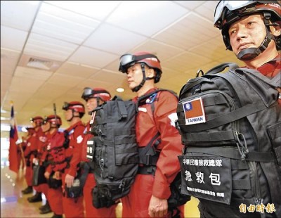 民間組成的中華民國搜救總隊也派15名成員前往災區。 (記者姚介修攝)