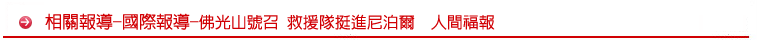 尼泊爾大地震已造成重大死傷,物資嚴重缺乏,亟需國際援助,台灣方面,在佛光山、國際佛光會統籌號召下,包括中華民國紅十字總會、中華民國搜救總隊,高雄長庚醫院等團體組成「人間有情.同體共生—尼泊爾四合一救援總隊」昨天前往尼泊爾展開救援。