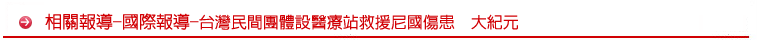 國際佛光會、高雄長庚醫院、中華民國紅十字會、中華民國搜救總隊共組尼泊爾救援隊,一行37人今天清晨抵尼國後,上午前往距加德滿都15公里的拉利波爾(Lalitpur)縣哈瑞錫迪(Harisiddhi)村設置醫療站並發放物資。