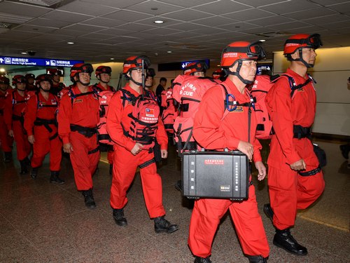 The 37-member team is comprised of people from the International Headquarters Search and Rescue (SAR), Taiwan, a non-governmental, volunteer-based search and rescue organization, and two charities, the Red Cross Society of the Republic of China and the Buddha's Light International Association.