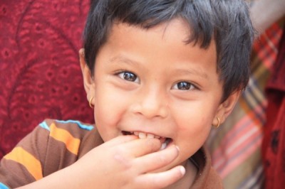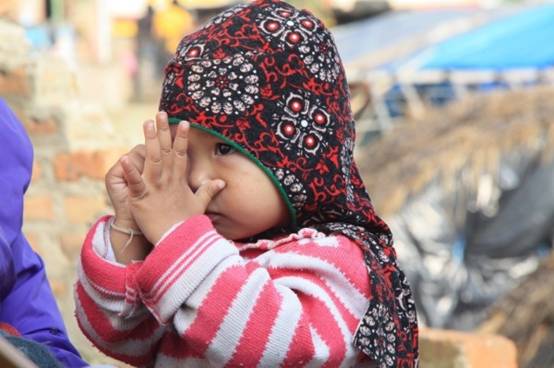 加德滿都東部的Harisiddhi小村莊,小孩摸鼻祈禱。(圖片由高雄長庚提供)