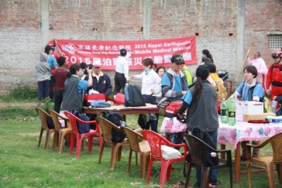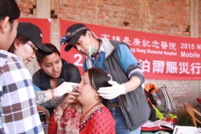 高雄長庚醫院、佛光山、中華民國搜救總隊於加德滿都東部的Harisiddhi小村莊設立醫療站救助上千災民。(圖片由高雄長庚提供)