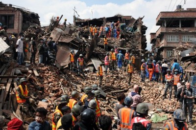 尼泊爾強震至今,首都加德滿都仍滿目瘡痍,搜救行動持續進行。(法新社)
