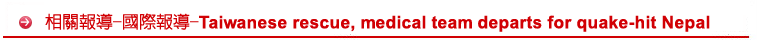 TAIPEI--Dozens of Taiwanese rescuers, medical staff and charity group members departed for Nepal on Tuesday afternoon to help the Himalayan country recover from a magnitude-7.8 earthquake last weekend that has left thousands dead.