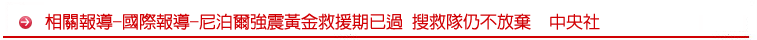 尼泊爾強震黃金救援期已過 搜救隊仍不放棄 中央社