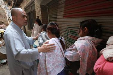 圖說:慧顯法師安慰罹難者家屬。 人間社記者陳昱臻攝