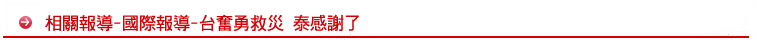 【大紀元6月20日訊】〔自由時報記者謝武雄╱八德報導〕去年底南亞大海嘯,來自台灣搜救總隊的表現,令泰國政府相當感謝,昨天由該國觀光局駐台北辦事處處長陳漢明致贈獎牌給消防署,然後轉贈給搜救總隊。