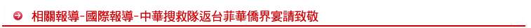 抵菲協助土石流災難搜救行動的中華搜救總隊,二月二十七日中午從菲律賓災區搭乘菲律賓軍軍機平安返抵馬尼拉,在接受僑界宴請致意後,已於下午五點搭乘華航班機返台。