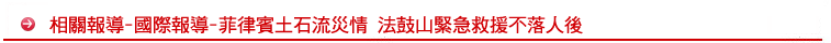 土石流山崩事件到現在為止,已找到109具屍體,救出57人,還有1千8百人失蹤,可能已經死亡,官方估計這次事件造成多達三千人失蹤,最後死亡數字恐怕也相去不遠。發生災難的雷伊泰(Leyte)省聖伯納(Saint Bernard)鎮昆紹岡村,距馬尼拉約六百多公里,由於連日豪雨,山坡土壤不堪負荷而於昨天上午發生崩塌,整座村莊被土石流淹沒,昆紹岡村約有兩千五百名居民,加上鄰村前往參加當地節慶的民眾,雷伊泰省長黎里亞斯、以及聖伯納鎮華裔鎮長瑪麗亞.林估計,受困者可能多達三千人。
