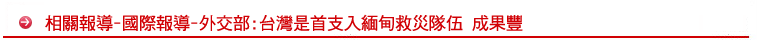 外交部政務次長夏立言今天說,五月三日緬甸遭受熱帶氣旋侵襲造成嚴重傷亡,台灣愛心不落人後,經由財團法人靈鷲山佛教基金會與緬甸軍政府的溝通,讓台灣搜救與醫護團隊成為第一支進入緬甸重災區的外國援助團體,初步救援任務已暫告段落,呼籲各界持續投入資源幫助災民渡過難關。