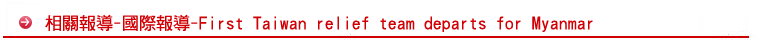 TAIPEI, Taiwan -- The first Taiwan relief team to obtain permission from the Myanmar military government to enter cyclone devastated areas departed for the southeastern Asian country yesterday.
