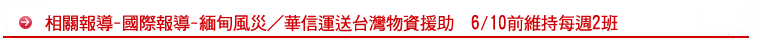 此外,運送物資進入仰光前亦必須於班機出發前一日先將物資明細、詳載物品名稱、數量、單價、運送總數量等送交緬甸政府核備,獲同意後方可輸送。