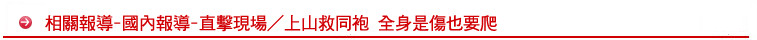 「下面人員小心!有落石掉下來!」土石鬆軟,雙腳常踩空,還得時時注意滾下的落石,須抓緊巨石邊緣穩住身體,記者在陡坡處踩空,嚇出一身冷汗。碰到懸崖、斷層,特戰官兵架上繩索攀爬,身上都被尖銳礫石劃傷,記者左手掌破皮流血,咬牙繼續爬。