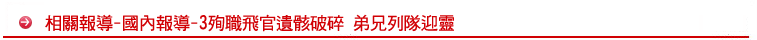 三名飛官破碎的遺體,被分裝在五個忠靈袋內,由三輛救護車從東澳迎回花蓮空軍基地,四○一聯隊第十二偵照隊的弟兄,列隊敬禮迎靈,個個面色凝重,家屬哀痛逾恆,無言。