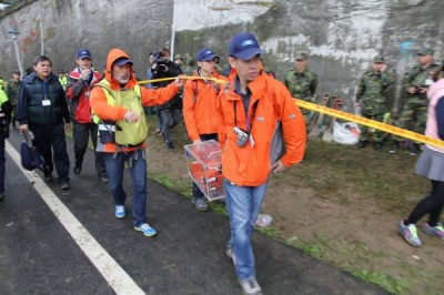 復興空難,救難人員搶救。(記者方賓照攝)