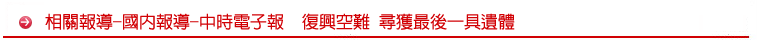 復興空難發生第9天,今天下午5時30分,飛機失事現場尋獲最後一具遺體,大陸籍的乘客陳仁泰,與機椅相連,位置於基隆河二號水門處尋獲,檢方於晚間相驗後開立死亡證明書,將陳仁泰遺體發交女兒,空難相驗告一段落。檢方表示,陳仁泰身上雖沒有證件,但遺體大致完整,死因是多重性創傷致死,初判是墜機時受到強烈撞擊,導致身體多處骨折死亡。今天清晨,陳仁泰的家屬就抵達搜救現場,他們在岸邊焚香燒冥紙,呼喚陳仁泰名字,希望趕快出現。2月4日上午10時55分,復興航空GE-235班機,搭載58人,從松山機場飛往金門,起飛後在基隆河上墜機,總計造成43人罹難,15人受傷。黑盒子錄音檔顯示,機長曾向航空管制員呼叫「Mayday、mayday、mayday,engine flameout!」。