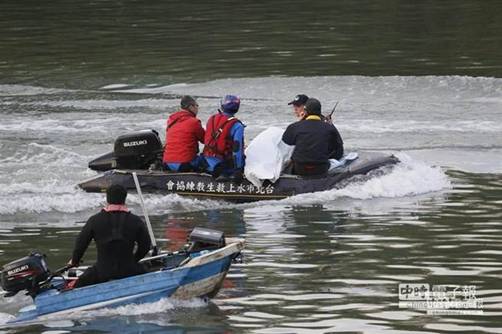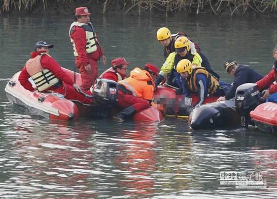 搜救人員傍晚於成功橋下2號水門附近,找到復興空難最後1具罹難者遺體。(張鎧乙攝)
