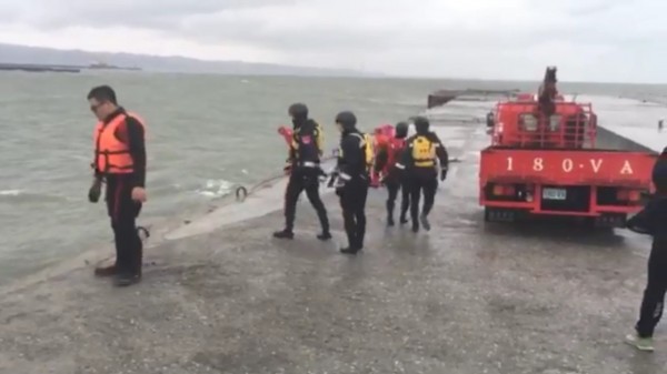 搜救人員在2人疑似落海處搜索。(記者黃捷翻攝)