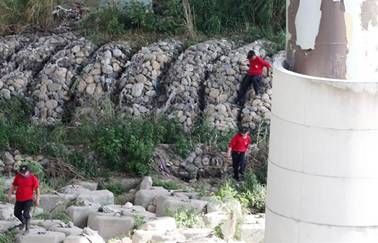 搜救人員持續在大里溪下游各攔截點間搜索救援。(黃國峰攝)