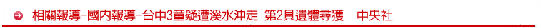 (中央社記者趙麗妍台中3日電)台中市太平區昨天3名學童疑遭溪水沖走,今天下午在大肚溪的國道一號下方,尋獲第2具遺體,經指認確認為12歲陳姓男童。