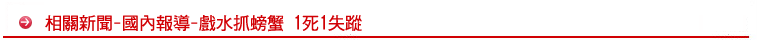 出海口戲水 國中生溺斃 知本派出所調查指出,知本國中一年級學生謝安泉(12歲)與林姓同學、蕭姓學弟,相偕前往知本溪出海口戲水,大約前天中午時分,3人計畫從荒野地區防風林橫渡知本溪返家,其中蕭姓同學率先上岸,回頭一看發現另外2人不會游泳,趕快丟了一根木頭給林姓同學,讓他順利上岸,但此時謝安泉已不見蹤影。