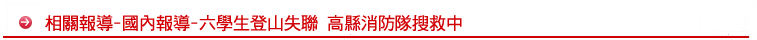 縣府消防局昨天清晨二時許接獲台北教育大學學生黃耀德報案簡訊指出,同學陳冠宇、朱律旳(女)及大同科大學生張廷倫三人十八日攀登海拔三千兩百三十九公尺的關山,未按預定行程二十三日在桃源鄉塔關山下山。