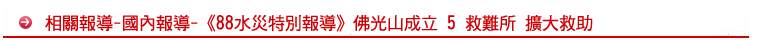 【記者高堂堯屏東縣報導】佛光人持續投入莫拉克風災的救援行動,在災情嚴重地區屏東縣的佳冬鄉、林邊鄉、東港鄉、新園鄉,及高雄縣旗山鎮,設立五處救難指揮所。