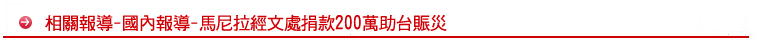 莫拉克颱風在台灣造成慘重災情,馬尼拉駐台北經濟文化辦事處理事主席阿干答拉,今天代表菲律賓政府捐新台幣200萬元協助救濟,並轉達雅羅育總統的慰問與關心。