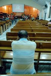 重創南台灣的88水災,造成數百人的家園破碎,生離死別。來自宗教團體全天候的服務,災民受創的心靈也有歇息的角落。圖為內門鄉木柵教會收容所災民禱告。//中央社