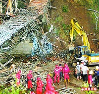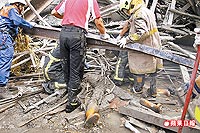 鷹架鋼條、木條和混疑土重重壓下,造成搜救困難。中央社