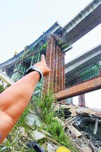 國道六號北山交流道施工鷹架坍塌,匝道成了斷橋。陳方瑩攝