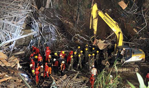 軍方及民間持續增援,入夜後,仍有四人失蹤,但搜救人員未放棄,陸續再挖出四人,但都已死亡。