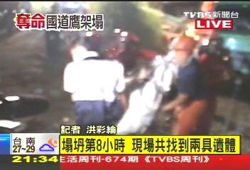 時間一分一秒過去,在晚間9點10分有了新的進度,救難人員小心翼翼將受困工人從鋼筋、水泥堆中挖出來,不過,遺憾的是已經失去生命徵象,沒多久,9點半左右,搜救再度有了進展,不過扛出來的依舊是一具具冷冰冰的屍體,國工局表示3名死者應為外籍勞工,剩下的1名受困工人,則是台籍領班莊永和。