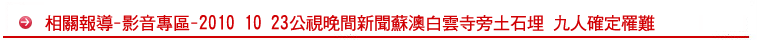 2010 10 23公視晚間新聞蘇澳白雲寺旁土石埋 九人確定罹難