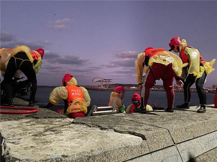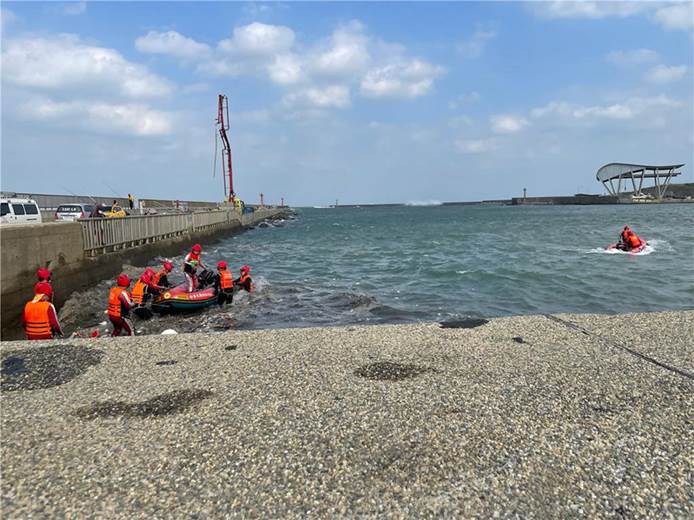 圖說:救護隊員們重複操作搜救艇的離岸與靠岸。圖/台灣中華民國搜救總隊提供