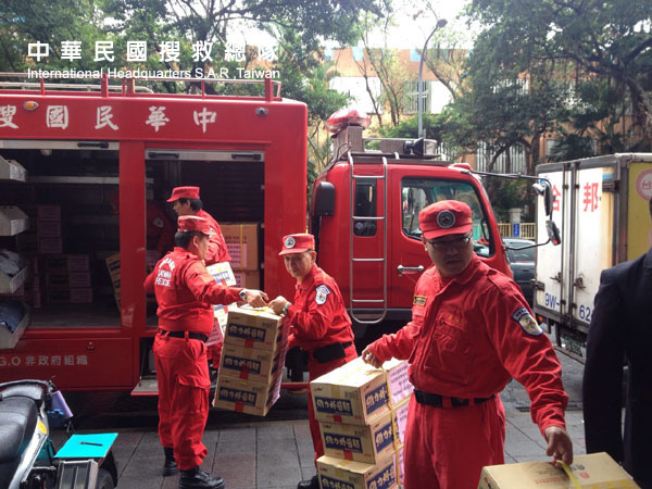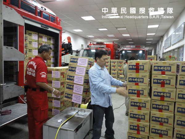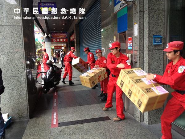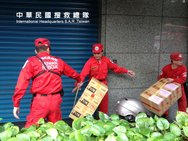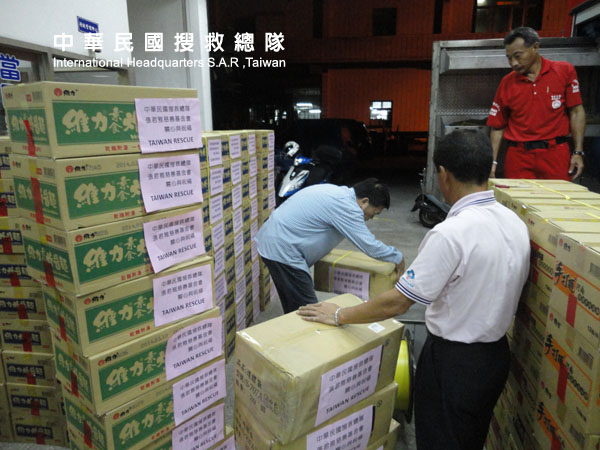 搬運賑災物資至馬尼拉經濟文化辦事處