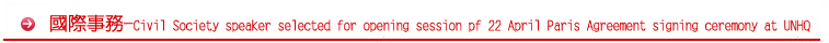 Civil Society speaker selected for opening session pf 22 April Paris Agreement signing ceremony at UNHQ
