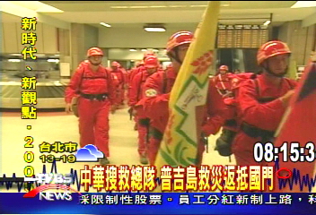 從國際媒體的畫面,可以看到穿著紅衣,來自台灣的中華搜救總隊,這一個禮拜來,中華搜救總隊不分畫夜在泰國普吉島進行搜救任務,面對宛如戰後屍首遍野的景象,搜救隊員很有耐心地毯式的搜救行動,也獲得國際間肯定。 晚上11點,35搜救隊員,結束第一階段搜救任務,返抵國門,一步入機場的大廳,馬上受到現場民眾英雄式的歡呼。