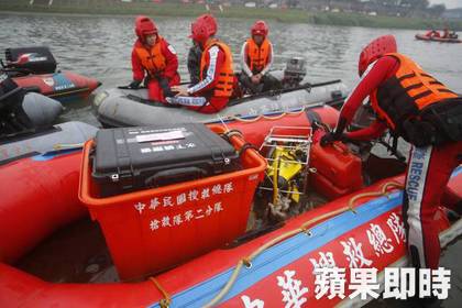 復興空難第二日,仍有12名乘客下落不明,搜救人員持續不間斷的在河面上來回搜尋,由於氣溫較昨天更低,潛水人員更是需要每半小時就換班。為了增加搜救進度,河面上的搜救小艇,都配備有聲納掃描測深儀以及水下攝影機協助搜尋失蹤乘客。(余思維/台北報導)